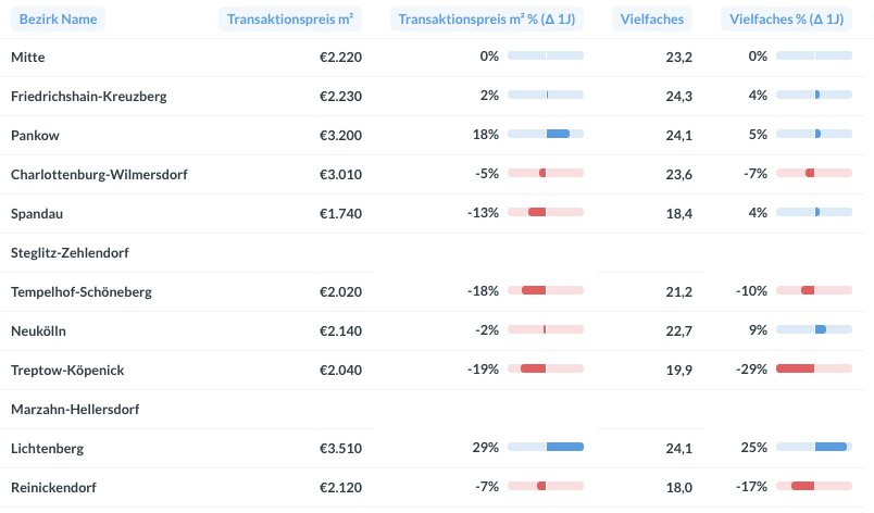 Location drives pricing – but not through the old "expensive center, cheap periphery" model. Development varies sharply: northeastern boroughs (Pankow, Friedrichshain) are recovering; classic western districts like Charlottenburg-Wilmersdorf trend sideways or slightly down. Mitte and Kreuzberg remain stable. The table details borough-level trends.